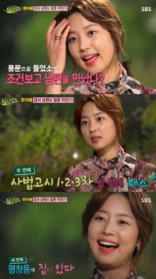 배우 한지혜가 검사 남편과 결혼한 이유를 솔직하게 밝혔습니다.