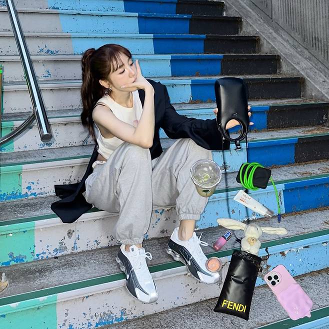 이날 윤은혜가 선보인 패션은 최근 가장 주목받는 '애슬레저 시크(Athleisure Chic)'의 정석이었습니다.