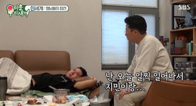이어 "난 오늘 일찍 일어나서 지민이랑 밥 먹고 하루가 긴데"라고 자랑했다. 이상민은 "잘났다 잘났어"라고 대꾸했다. 김준호는 "형도 연애를 해야겠다. 나 옛날 폐인 때 모습"이라며 쌓인 쓰레기들에 혀를 찼다.