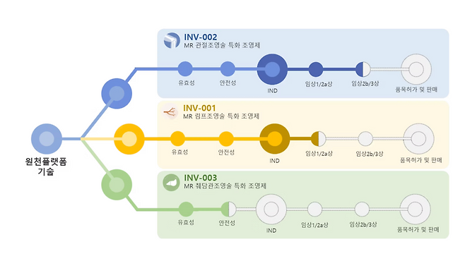 인벤테라는 후속 파이프라인을 확보함으로써 IPO 이후 밸류에이션 방어를 꾀하고 있다. 조영제 기술 플랫폼을 기반으로 적응증을 다변화한 방식이다. 회사는 INV-002 외에도 림프조영제(INV-001), 췌담관 조영제(INV-003) 등을 주요 파이프라인으로 보유하고 있다.
