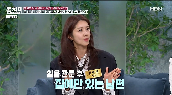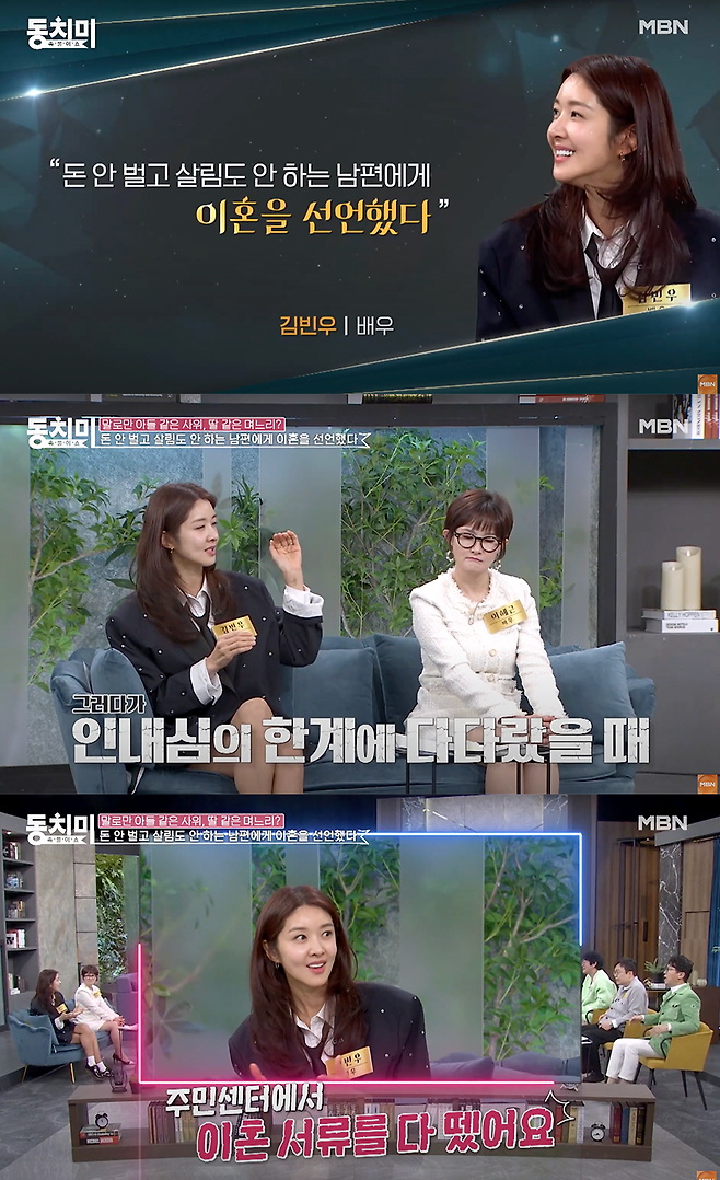 김빈우는 인내심의 한계가 다다랐을 때 "남편 존재 자체가 싫어졌다"고 표현할 만큼 마음이 굳어졌다.