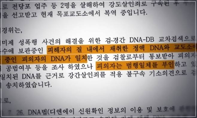 2010년, 살인, 강간, 방화범들의 DNA 데이터베이스가 구축되면서 전당포 업주 등 2명을 살해한 강도살인죄로 목포교도소에 복역 중이던 김도룡의 DNA가 박양 시신에서 검출된 DNA와 일치한다는 사실이 밝혀졌어요. 😱
