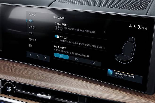 눈에 띄는 변화는 ‘파노라믹 커브드 디스플레이’다. 12.3인치 디지털 클러스터와 12.3인치 인포테인먼트 스크린이 자연스럽게 이어지며 곡선으로 연결됐고, 이는 실내를 한층 세련된 분위기로 만든다. 대시보드 자체도 부드러운 패딩 소재가 적용돼, 과거 싼타페의 플라스틱 일색 실내와는 비교할 수 없을 만큼 감각적인 터치감을 제공한다.