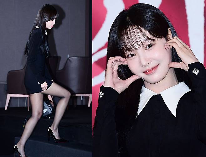 연우는 블랙 미니 원피스를 선택해 단아하면서도 섹시한 무드를 연출했습니다.
