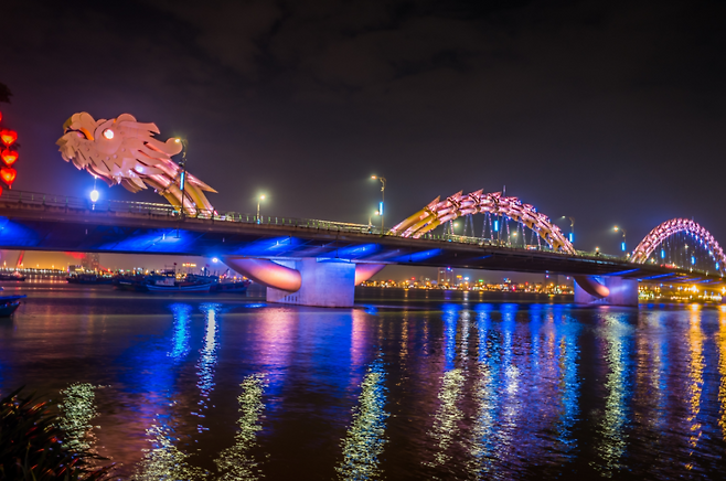 용다리는 야경뿐만 아니라 사진 찍기 좋은 장소로도 유명한데요. 다리 위에서 찍는 사진뿐만 아니라 다리 아래에서 바라보는 전경도 굉장히 멋지답니다. 특히 불쇼가 시작되기 전에 용다리를 배경으로 사진을 찍어 두면 밤의 다낭에서만 만날 수 있는 특별한 추억을 남길 수 있어요.