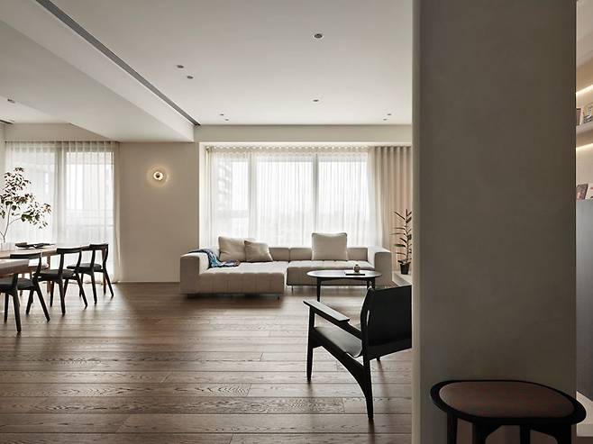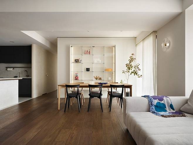 가장 먼저 한 일은 현관과 주방 사이 벽을 철거한 것이다. 건설사가 세워둔 칸막이를 과감하게 없앴다. 덕분에 집에 들어서는 순간부터 거실 끝까지 시야가 트인다.