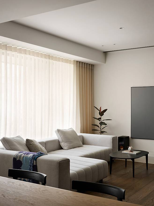 이 집에서 가장 독특한 건 소파 배치다. 보통은 소파를 TV 앞에 둔다. 그런데 이 집은 다르다. 소파를 창가 쪽으로 돌려놓았다.