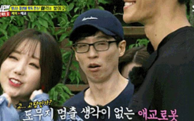 해당 짤을 보면 애교를 부리는 케이의 뒤편으로 무표정하게 쳐다보고 있는 유재석의 표정이 압권이다. 이 짤로 인해 당시 방송에서 케이가 지나치게 긴 애교를 부려서 유재석이 정색을 했다는 말이 나돌았다. 반전은 이 짤이 절반은 거짓이라는 점이었다. <런닝맨> 방송에 출연한 건 맞지만 애교 때문에 정색했던 짤은 아니었다.