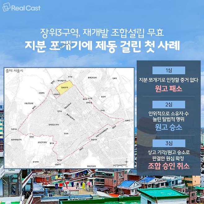 이러한 대법원 판결 이후 장위3구역은 조합설립 인가 처분이 취소돼 추진위 단계로 돌아가게 됐습니다.