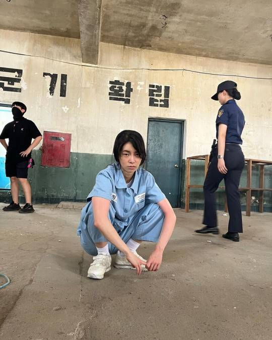 공개된 사진에서 임지연은 박연진이 되어 푸른색 컬러의 죄수복을 입은 채 선 채로, 혹은 쪼그려 앉은 채로 포즈를 취하며 '군기확립'이라는 메시지를 전해 웃음을 불러왔다.