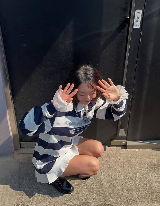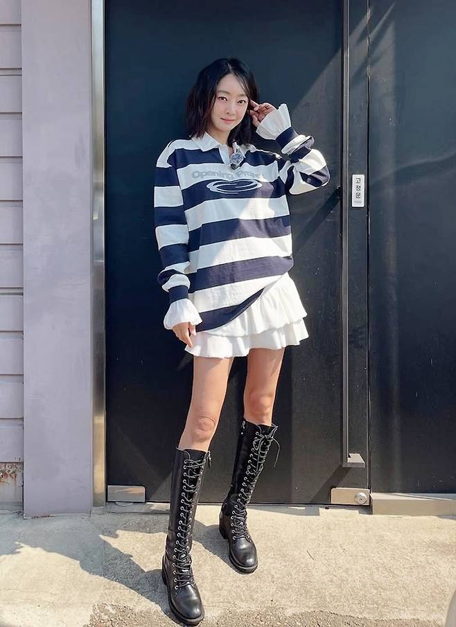 배우 서효림이 럭비 티셔츠와 복싱 슈즈에 미니 스커트를 매치한 러블리한 애슬레저룩으로 시선을 사로잡았다.