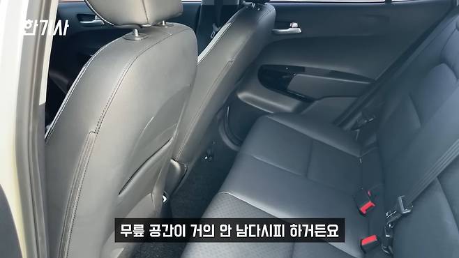 실내가 좁은 것도 경차이기 때문에 당연하지만 단점으로 볼 수 있는 부분입니다. 5인승 차량으로 뒤에 3명이 탈 수 있다고 되어 있는데, 현실적으로는 그렇게 앉기가 쉽지 않습니다. 운전석을 뒤로 조금 밀면 뒷좌석은 짐칸이 될 정도로 무릎 공간이 거의 남지 않습니다.