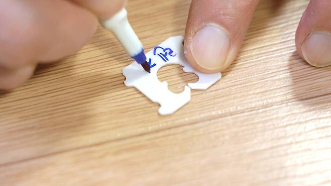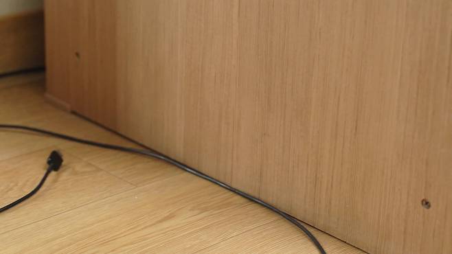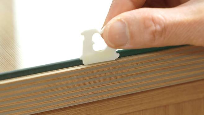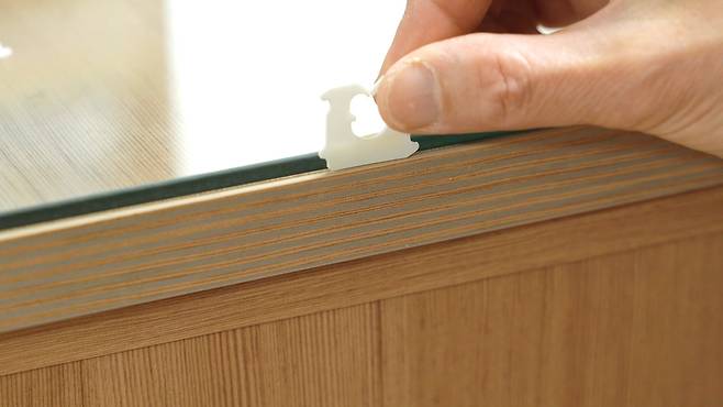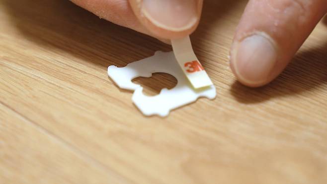 첫 번째 방법은 책상 옆에 붙여 두는 것인데요. 먼저 양면테이프를 붙여 주세요.