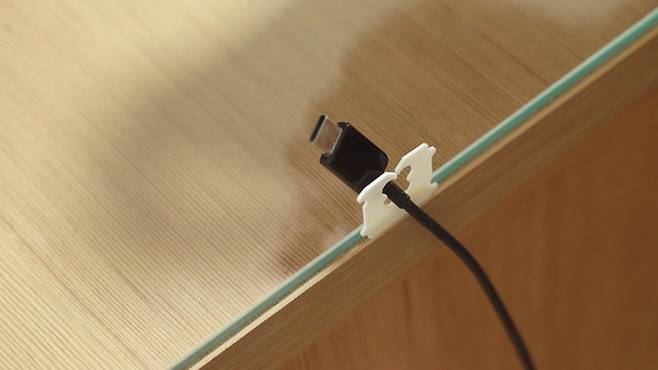 충전 케이블을 책상에서 사용하면 계속 바닥으로 떨어져 불편해요. 하지만 이렇게 빵클립에 선을 걸어 두면 바닥으로 떨어지지 않고 정말 편하게 사용할 수 있어 좋답니다.