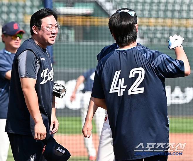 전날 포수로 출장했던 친정팀 후배 정보근은 안치홍과 만나 홈런에 대한 이야기를 늘어놓았고 후배의 모습에 안치홍은 흐뭇한 미소를 지어보였다.