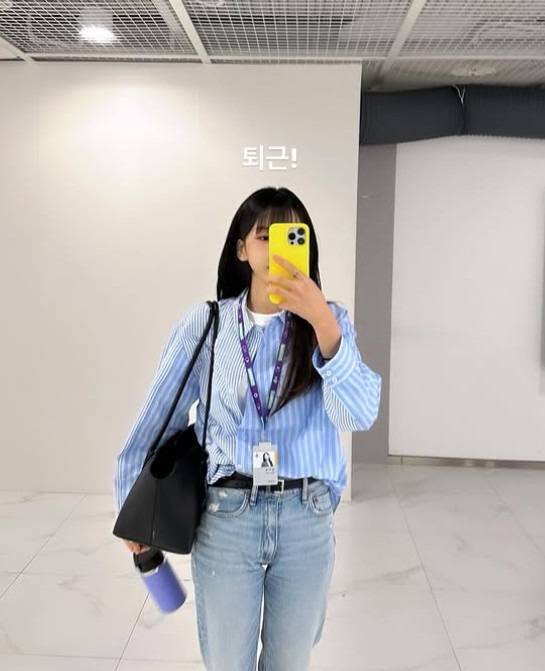 진청-연청, 숏-롱. 다른 매력의 두 가지 하의를 조합해 색다른 룩을 만들었네요.