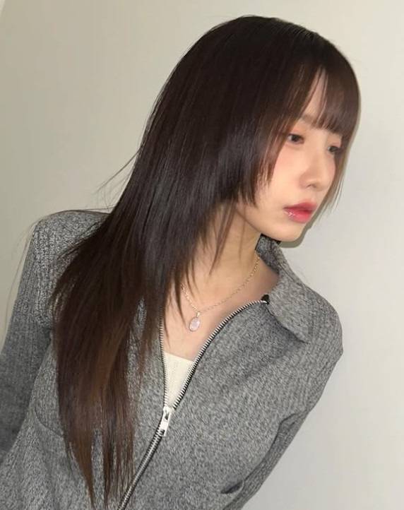 긴팔 집업은 카라의 매력을 살리면서도 지퍼를 내려 답답함을 없앴어요. 펜던트가 큰 목걸이가 드러나는 것도 포인트.