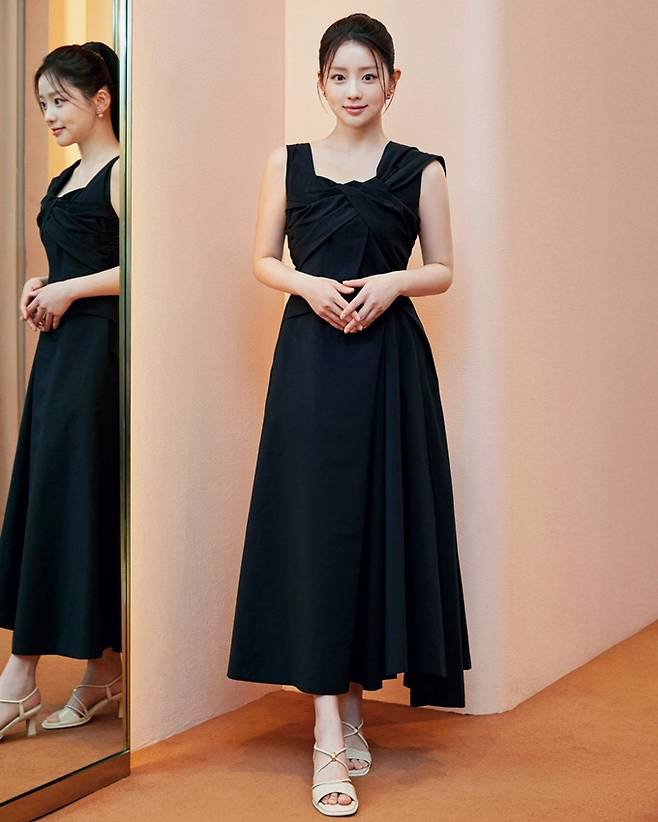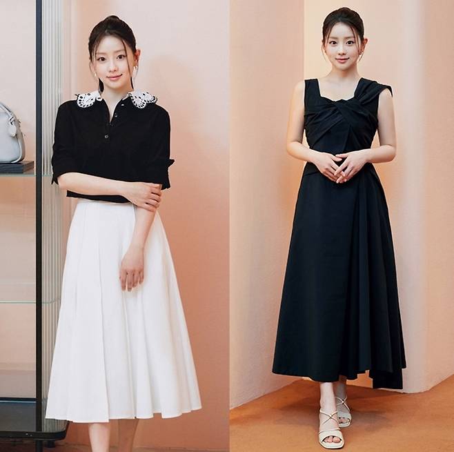 이날 채서안은 프레피룩을 플로럴하게 표현한 카라탑과 모던한 핀턱 디테일의 플레어 스커트를 착용해 산뜻한 스타일을 제안했으며, 입체적인 패턴과 노티드 디테일이 우아한 블랙 드레스를 통해 단아한 매력을 뽐냈다.