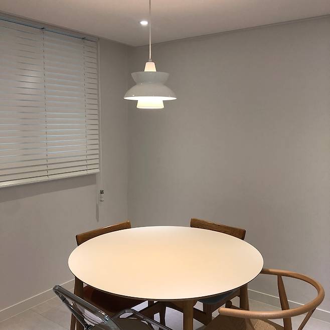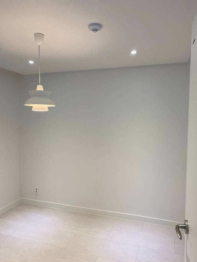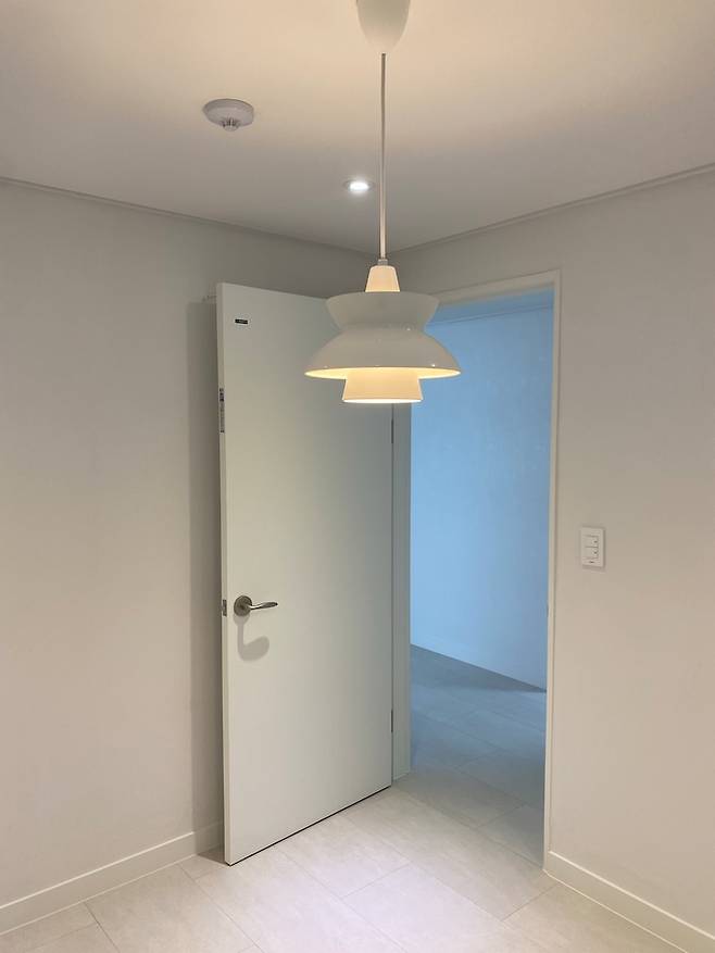 짐이 들어오지 않았을 때입니다! 사장님이 가장 신경 써주신 공간이기도 해요. 천장을 뜯어보니 전선을 뺄만한 공간이 충분하지 않으셨다고 합니다. 그래도 매립 등을 4개나 뽑아주셨어요. ㅎㅎ 실제로도 좁은 걸 봐서 고생하셨을 것 같습니다. 그리고 가장 먼저 산 조명! 루이스 폴센 두왑 팬던트입니다.