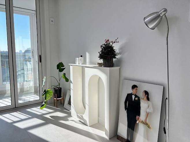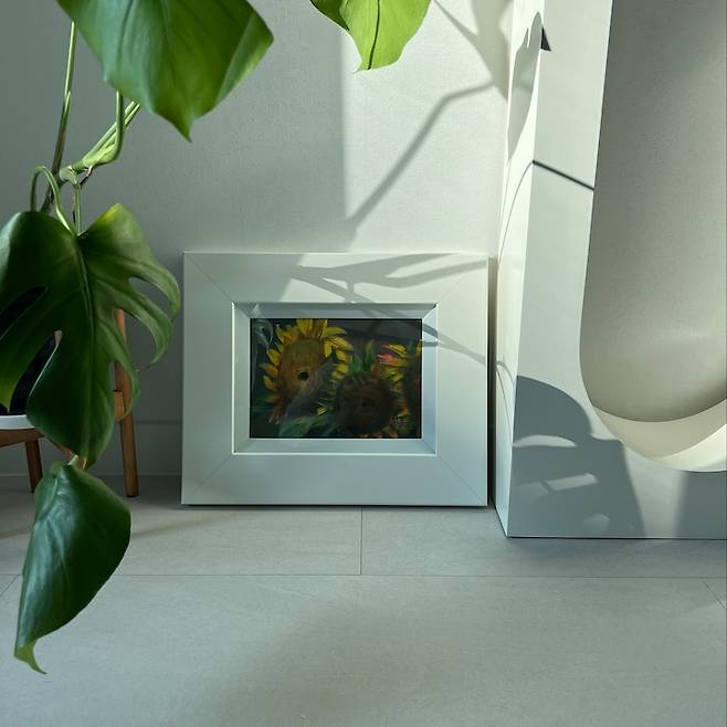 해바라기 그림은 아빠의 지인분이 결혼 선물로 주셨어요. 도배까지 다 새로 하니까 벽에 거는 게 마음 아파서 콘솔 옆에 자리 잡았습니다. 그림은 볼 때마다 마음의 안정을 주는 것 같아요! 그림을 추가로 구매하려고 열심히 보고 있지만 딱 마음에 드는 걸 찾기가 어려워서 아직까지 고민 중입니다:)