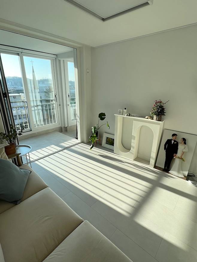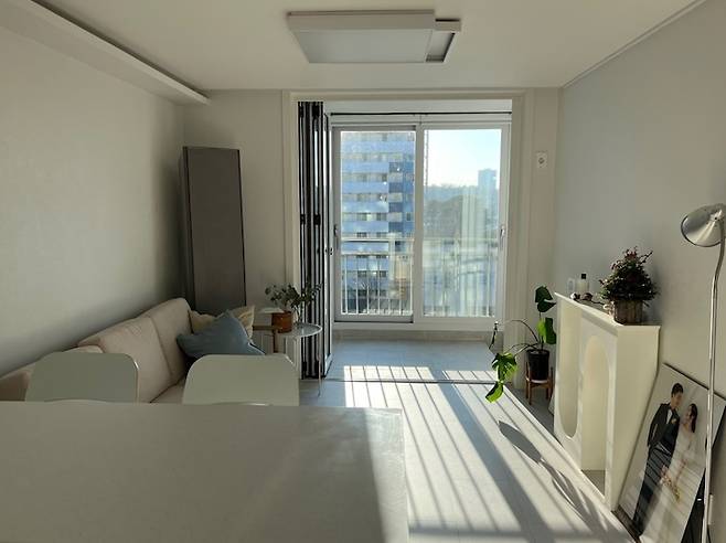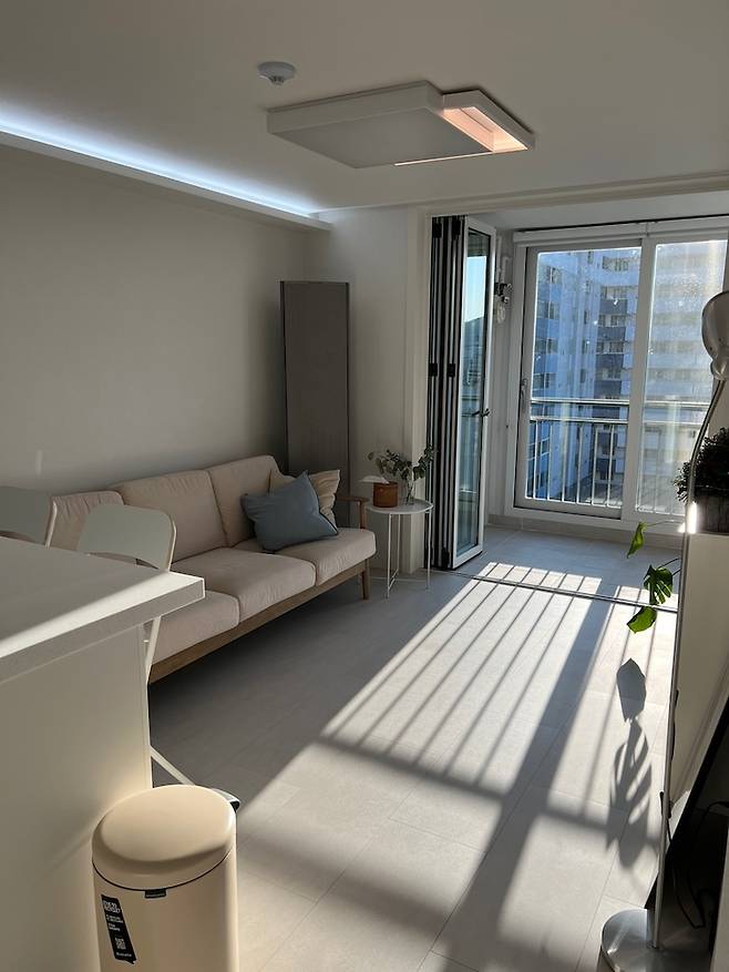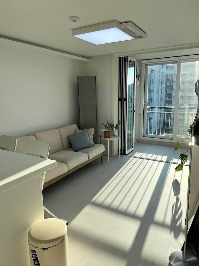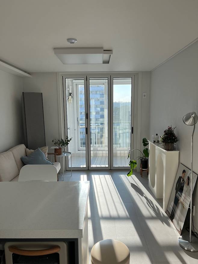 소파에 앉아서 밖을 바라보면 이 풍경이에요! 소파 위치를 정말 고민했는데, TV를 안방으로 넣어버리고 소파만 두 길 잘했다고 생각했습니다.