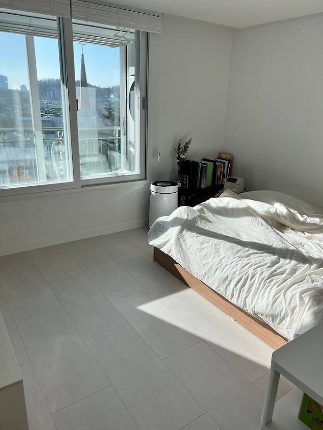 안방에는 침대를 두고, 붙박이장을 하려고 했으나 예정에 없던 TV가 안방으로 오면서 이것저것 잡동사니의 방이 되었습니다! 기존의 창문에 시트지?처럼 붙어있는 게 맘에 안 들어서 안방 창문도 모두 교체했어요.
