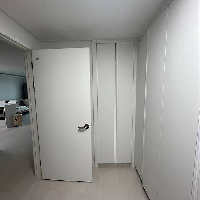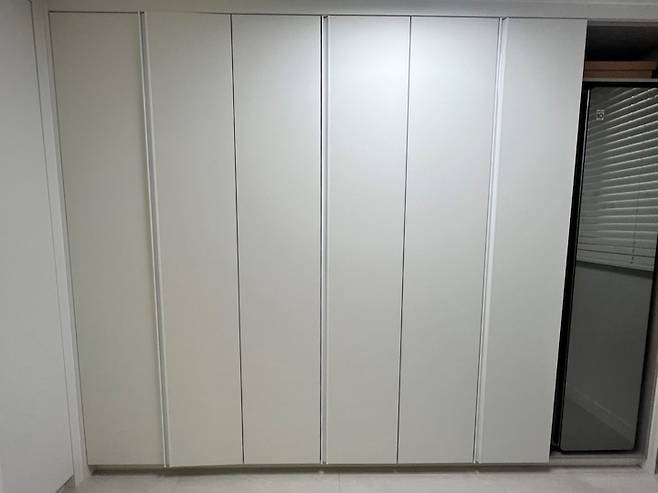 구축에 보면 꼭 작은방에 이런 옷장이 들어가 있어요! 여기를 다 빼버리고 ㄱ자로 장을 짜게 되었습니다.
