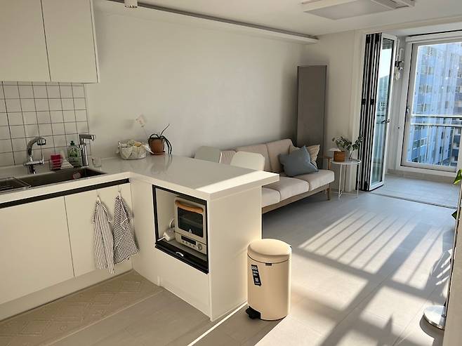아일랜드 때문에 거실 공간이 좁아질까 걱정했는데, 저는 오히려 부엌과 확실히 구분되어서 너무 좋아요.