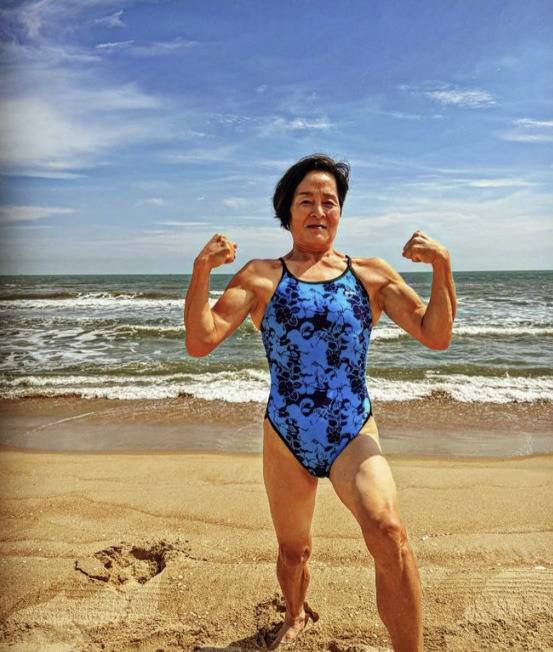 공개된 사진은 70세인 추성훈 어머니의 뒷모습이다. 오랫동안 해온 수영으로 생긴 수영복 자국과 울끈불끈한 등근육이 보는 이들의 감탄을 자아냈다.