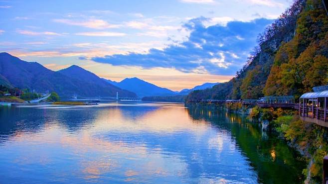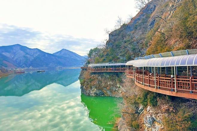 땀을 흘리며 오르는 산행이 부담스럽다면, 강과 절벽 사이를 걷는 트레킹은 여름철 최고의 대안이 된다. 단양에는 보기 드문 구조의 산책길이 있다. 바로 강 위 암벽을 따라 조성된 잔도다.