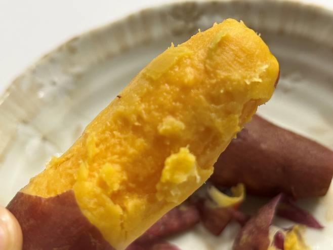 단맛이 덜한 고구마를 양끝을 잘라서 쪘더니 실제로 더 달콤하게 느껴졌습니다. 끝부분만 잘랐는데도 고구마 단맛 올리는 데 효과가 있습니다.