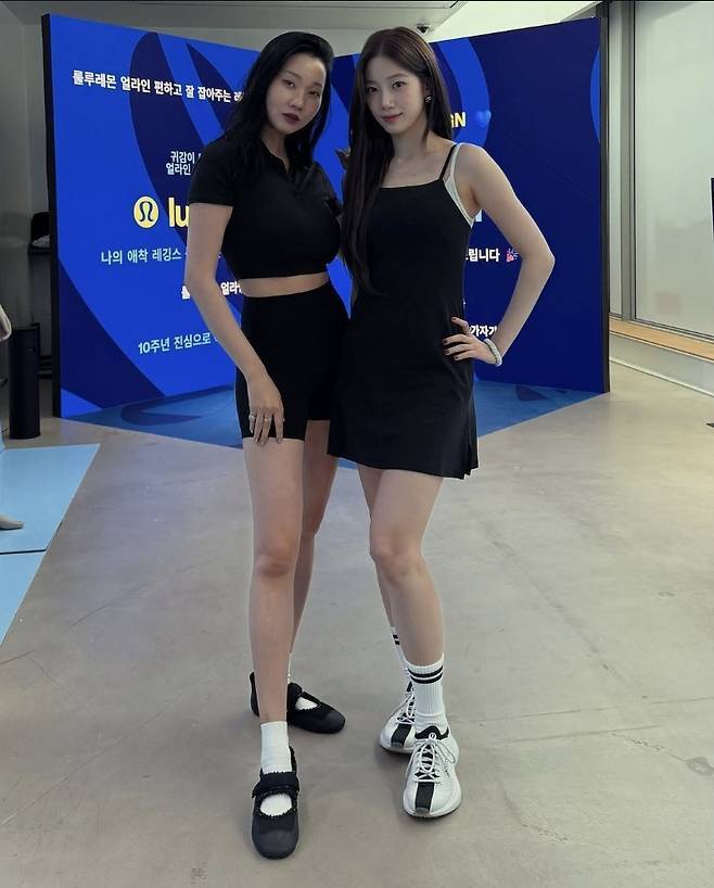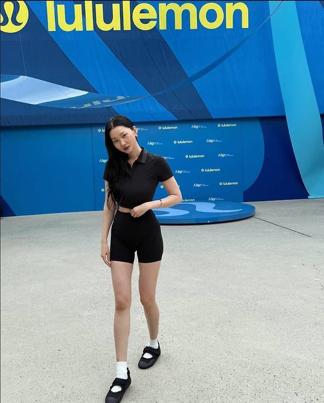 장윤주가 올블랙 애슬레저룩으로 완벽한 몸매를 자랑했습니다.