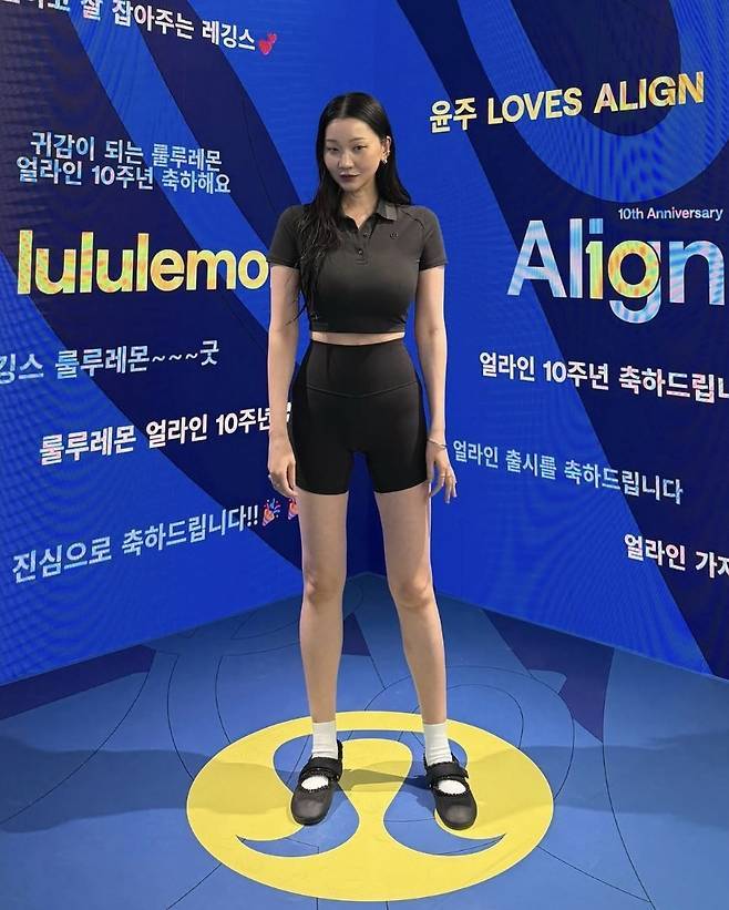 장윤주는 짧은 블랙 바이커 쇼츠와 슬림핏 카라 상의를 매치해 무심한 듯 자연스럽게 포즈를 취하면서도 각선미와 탄탄한 라인을 고스란히 드러내 시선을 끌었습니다.