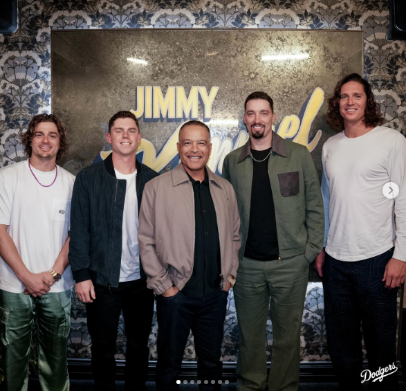 그곳에 다저스 멤버 5명이 초대됐다. 바로 엊그제(현지시간 4일) 일이다. 데이브 로버츠 감독, 타일러 글래스나우, 블레이크 스넬, 윌 스미스, 키케 에르난데스가 출연했다.