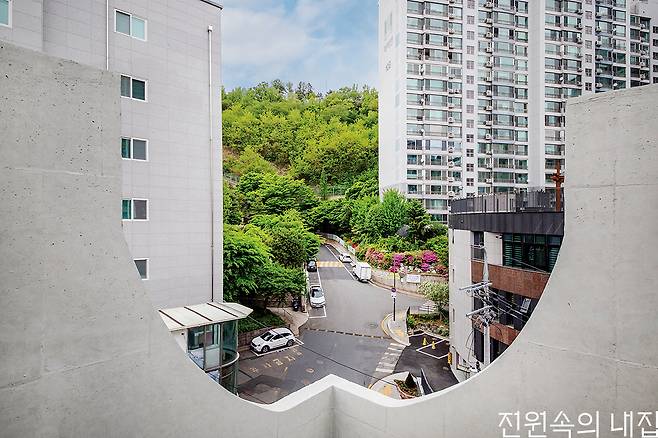 밖에서는 곡선으로 시선을 갈무리하고, 안에서는 부드럽게