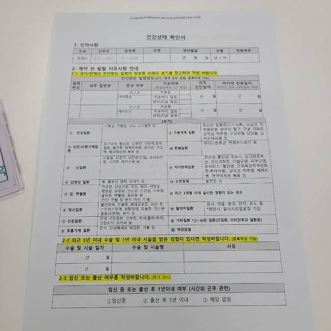 건강 상태 확인서 체크도 했어요.