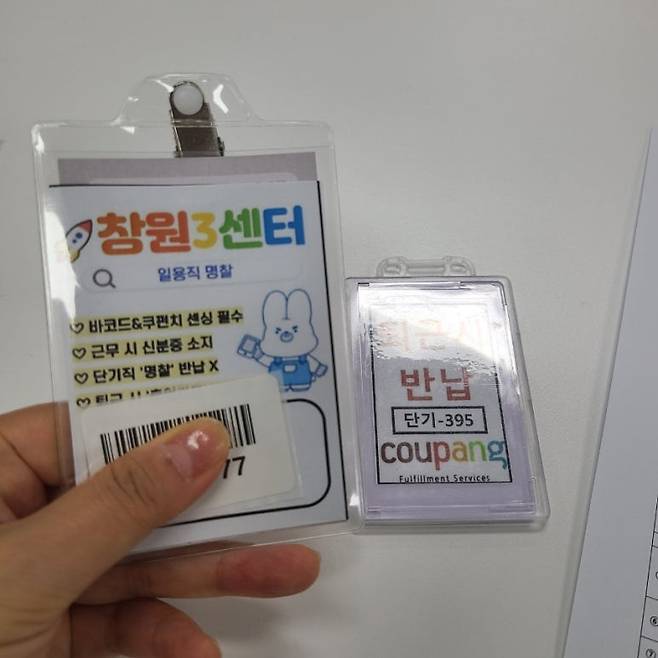 체크인 한걸 직원분께 보여드리니 사진과 같은 일용직 명찰과 퇴근 시 반납해야 하는 카드를 주셨어요.