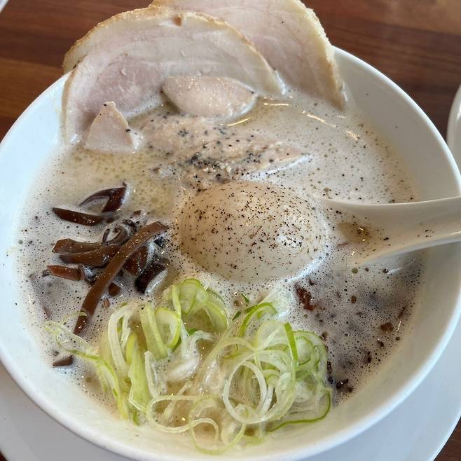 셰프님이 오랜 시간 동안 닭으로 육수를 우려내 하얗고 뽀얀 국물이 특징이며, 고소한 국물은 밥을 말아 먹어도 아무런 거리감이 없을 정도입니다. 또 고명으로 올라간 목이버섯, 닭가슴살은 라멘의 식감마저 풍부하게 만들어줍니다.