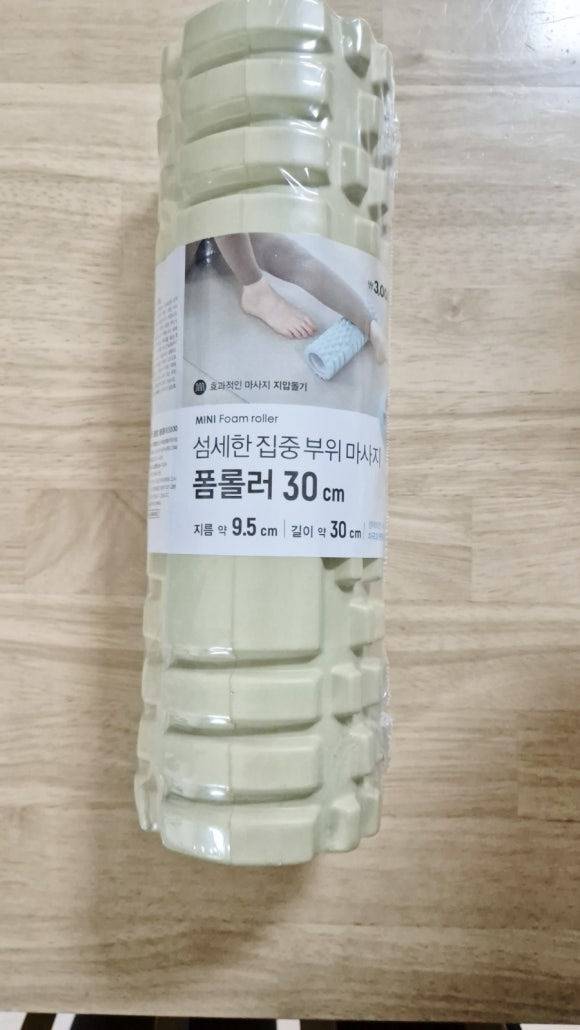 두 번째는 미니 폼롤러. 복근 운동 후, 근육 뭉침을 풀어주는 데 필수인 제품입니다. 특히 복부뿐만 아니라 옆구리나 등, 허리까지 굴려주면 전체적인 코어 이완에 도움이 되는데요. 다이소 미니 폼롤러는 크기가 작고 단단해서 셀프 마사지용으로 딱입니다. 가격은 3,000원대.