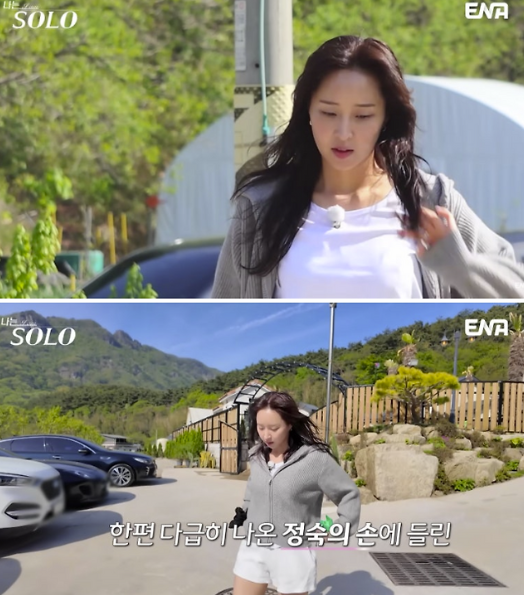 이너로는 화이트 크롭탑, 그레이 트레이닝 셋업 세트를 입었는데요, '나는 솔로' 27기 정숙 패션이 생각나네요! 데프콘과 이이경이 말했던 바로 그 스타일이죠? 정말 예뻐요! 😍