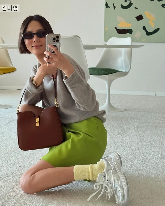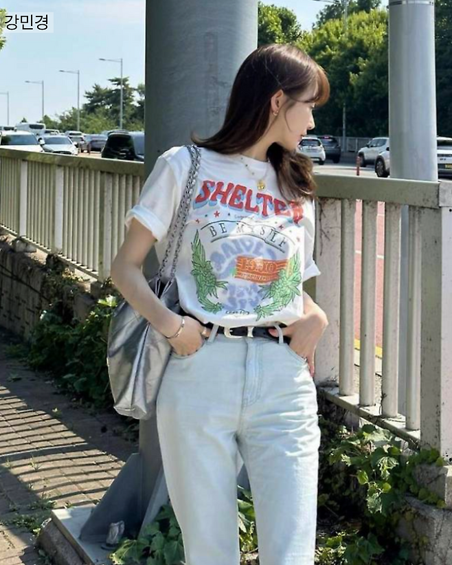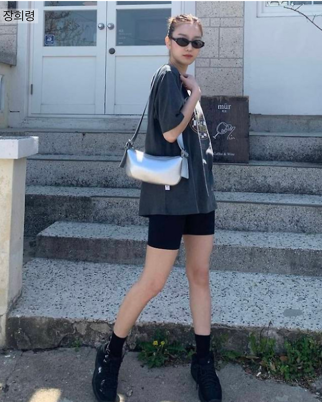 가방까지 실버로 코디해