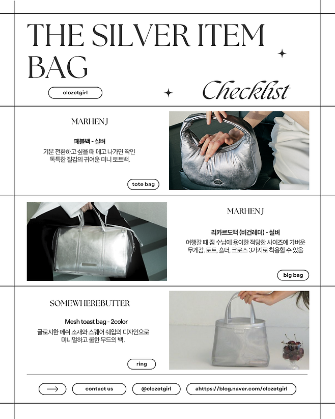 여자가방추천 실버백 모음입니다!