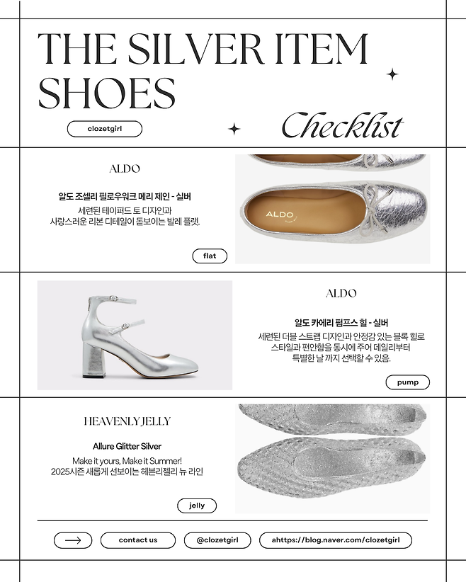 반짝이는 재질을 이용한 실버아이템은