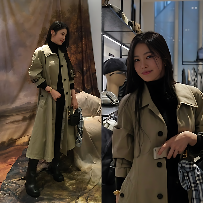 최근 공개된 사진 속 신예은은 클래식한 베이지 트렌치코트를 걸치고 블랙 하이넥 니트를 매치해 정석적인 가을 분위기를 완성했습니다. 여기에 블랙 팬츠와 롱부츠를 더해 차분하면서도 시크한 무드를 살렸고, 블루 체크 스카프를 가방에 묶어 계절감을 더한 센스가 눈길을 끌었습니다. 골드 뱅글과 이어링은 과하지 않게 빛나면서 은근한 포인트 역할을 했습니다.