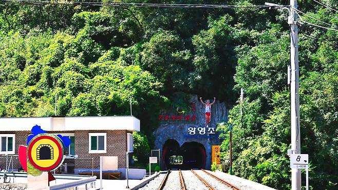 삼척 해양레일바이크의 또 다른 백미는 ‘테마 터널’이다. 단순한 암흑 통로가 아니라 화려한 조명과 루미나리에로 꾸며져, 마치 해저를 탐험하는 듯한 환상적인 분위기를 연출한다.