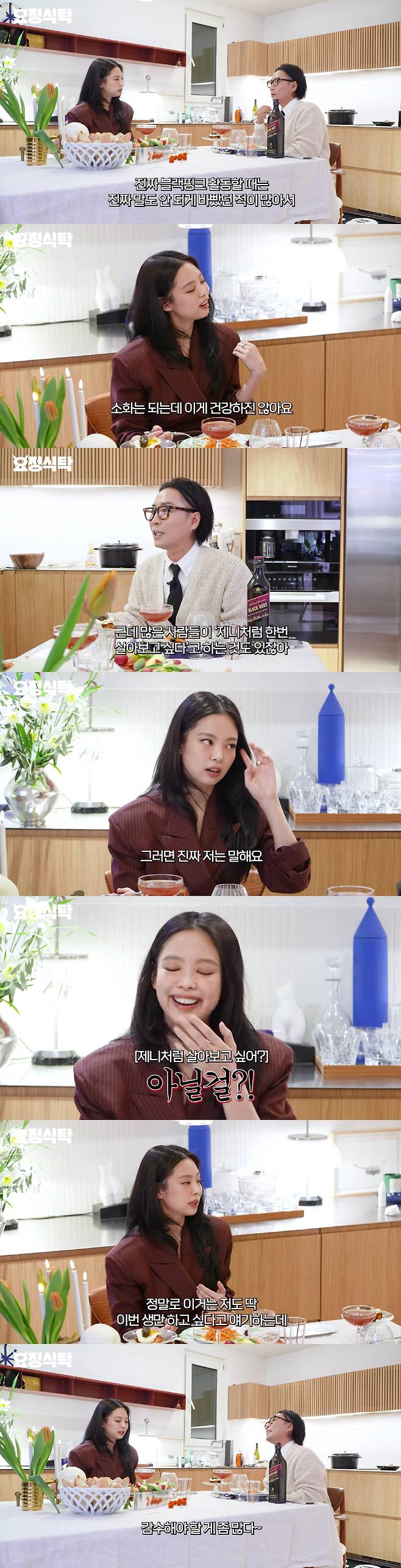 이에 정재형이 "그래서 그게 걱정인 거다. 근데 많은 사람들이 제니처럼 살고 싶다고 하지 않나"라고 말했고, 제니는 "맞다. 그럴 때마다 나는 '진짜 아닐걸?'이라고 말한다. 정말 나도 이번 생에만 이렇게 하고 싶다고 한다. 감수해야 할 게 많다. 다행히 소화는 하고 있다만 정말 쉽진 않았다"라고 토로했다.