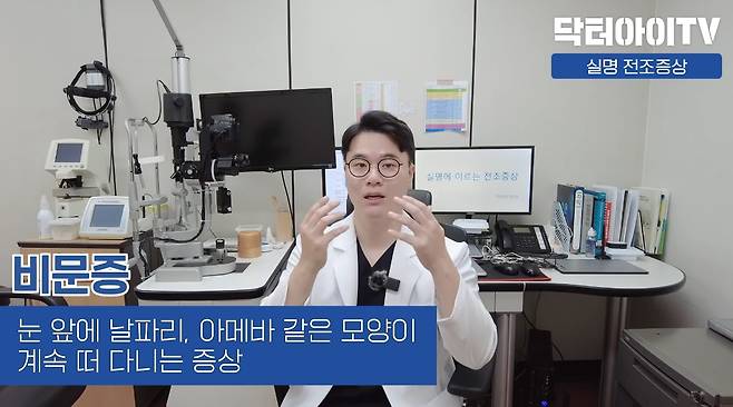 그렇다면 치명적인 안구 질환이 오기 전 미리 알아차릴 수 있는 증상에는 어떤 게 있을까? 닥터아이TV 신대환 원장은 자신이 운영하는 유튜브 채널에서 “유전병에 의해서 어쩔 수 없이 발병하는 경우도 있지만 골든타임을 놓쳐 실명하는 경우가 더 많다”면서 실명 전 나타나는 전조증상에 대해 밝혔다.