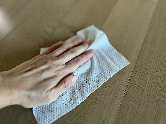 물티슈는 편리하지만 청소도구로 쓰기엔 부적합해요. 바닥이나 가구를 닦을 때는 물걸레 후 마른걸레로 마무리해야 깨끗합니다. 또 손잡이, 스위치를 닦을 때는 물티슈보다 알코올 티슈가 더 적합해요. 급하게 물티슈를 사용했다면 반드시 마른걸레로 한번 더 닦아야 깨끗해요.