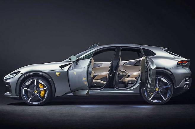 눈에 띄는 특징 중 하나는 롤스로이스처럼 코치 도어 방식을 채택했다는 점이다. 이로 인해 후석 승객의 승하차가 용이해졌으며, 페라리가 고급 SUV 시장을 얼마나 세심하게 공략했는지를 보여주는 대목이다.