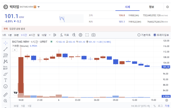 업비트, 빅타임 원화 마켓 추가